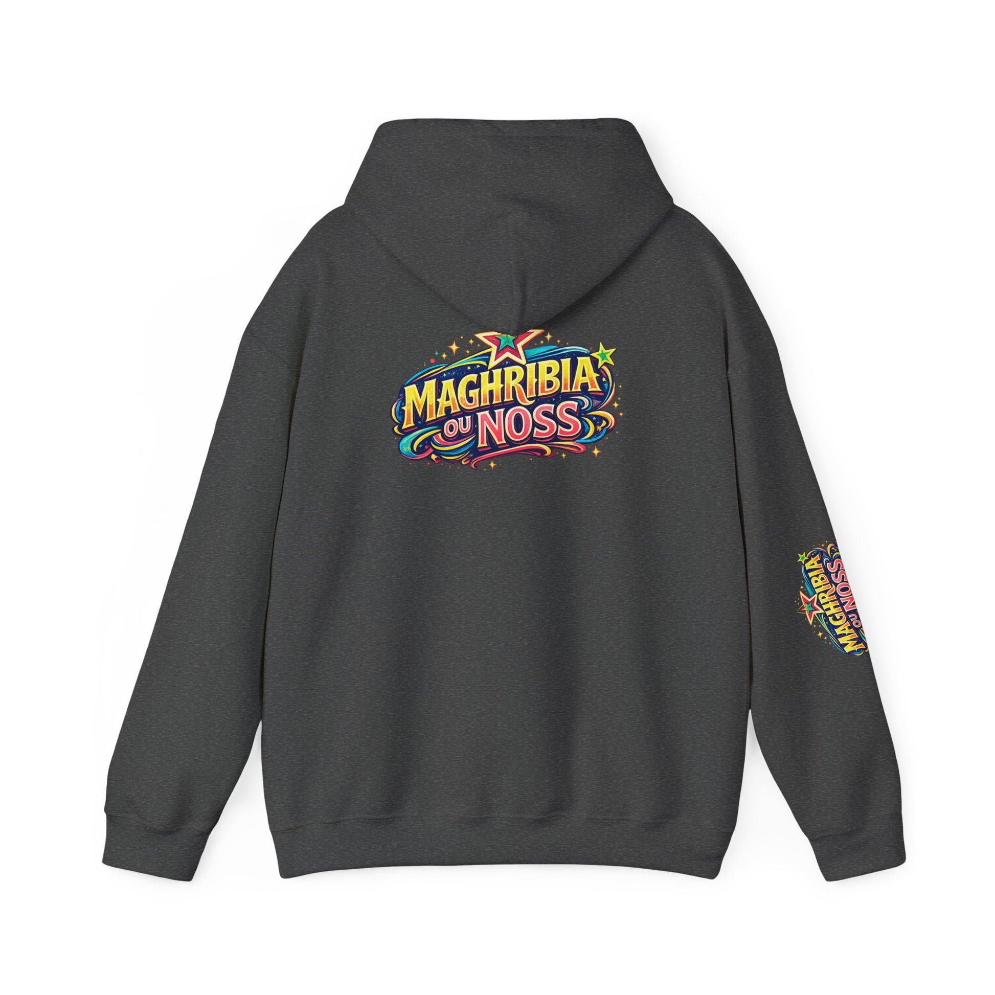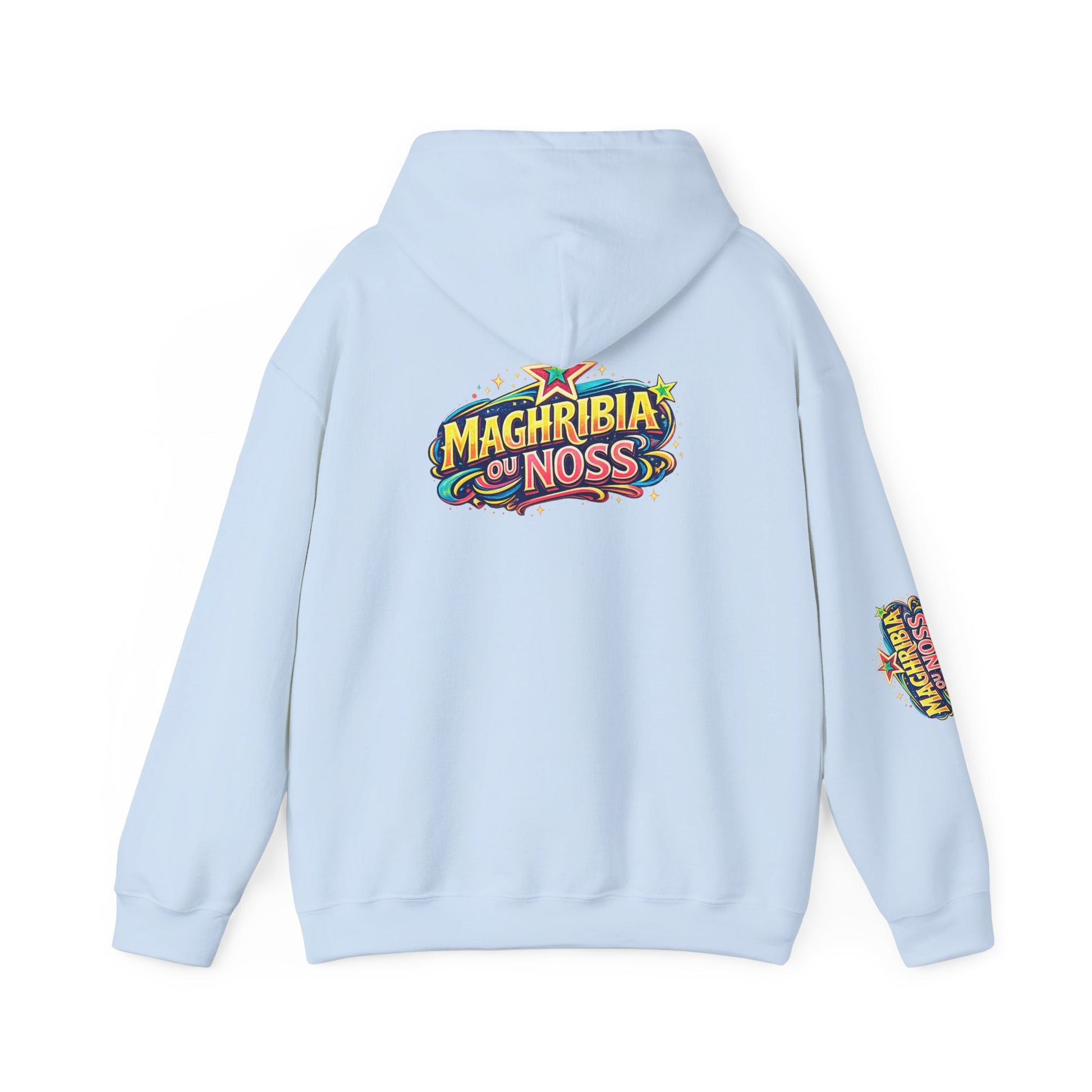 Affirme ton identité avec le hoodie MAGHRIBIA OU NOSS, une pièce streetwear inspirée de la culture marocaine contemporaine, entre pop art, héritage nord-africain et esprit urbain des années 90. Conçu pour celles et ceux qui portent leur culture avec fierté, ce hoodie allie confort premium, design artistique fort et message assumé.
